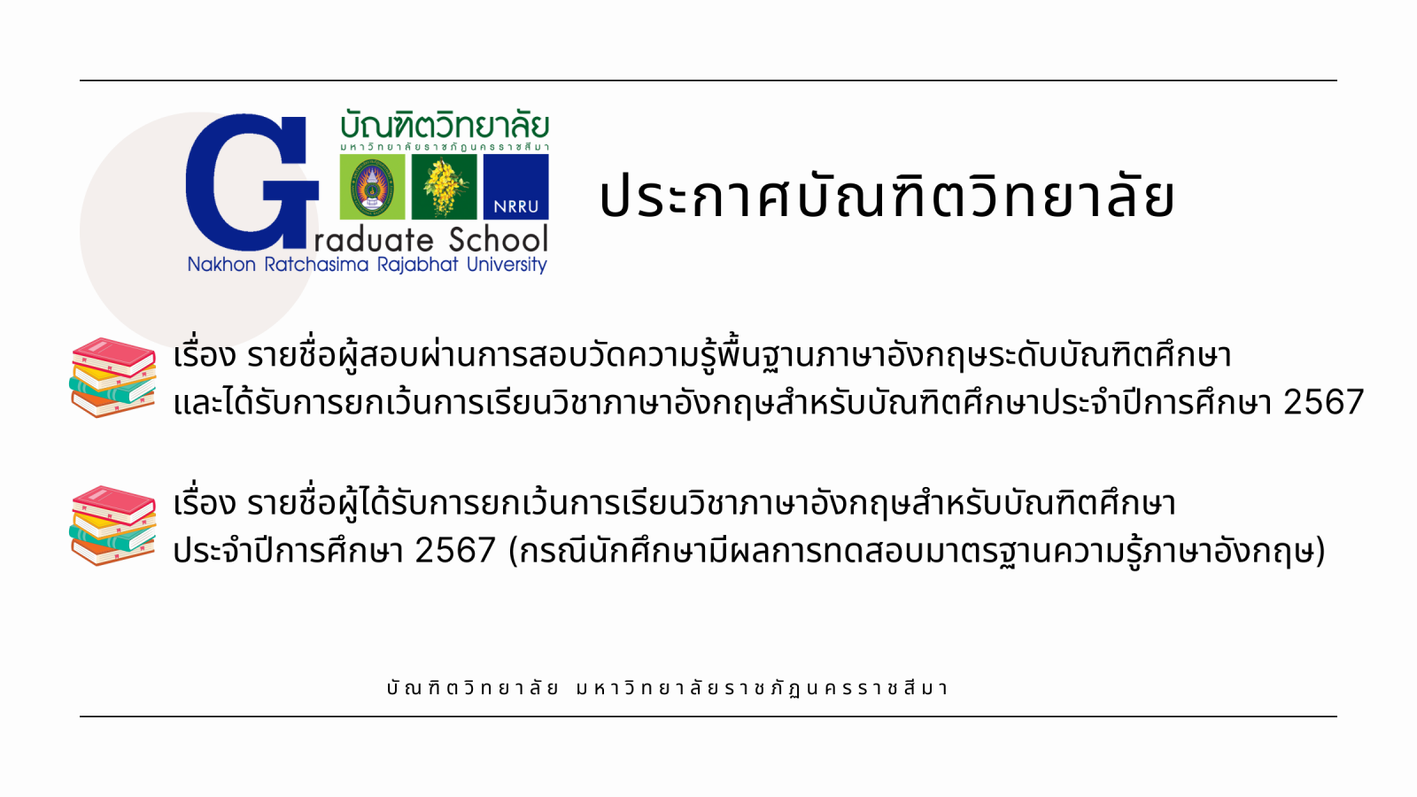 🆕ประกาศบัณฑิตวิทยาลัย เรื่อง รายชื่อผู้ได้รับการยกเว้นการเรียนวิชาภาษาอังกฤษสำหรับบัณฑิตศึกษา