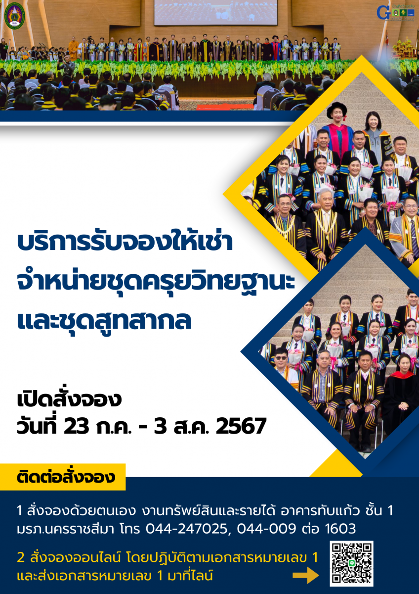 บริการรับจองให้เช่า จำหน่ายชุดครุยวิทยฐานะ ชุดสูทสากล และสั่งจองภาพถ่ายวันซ้อมจริง 18 สิงหาคม 2567